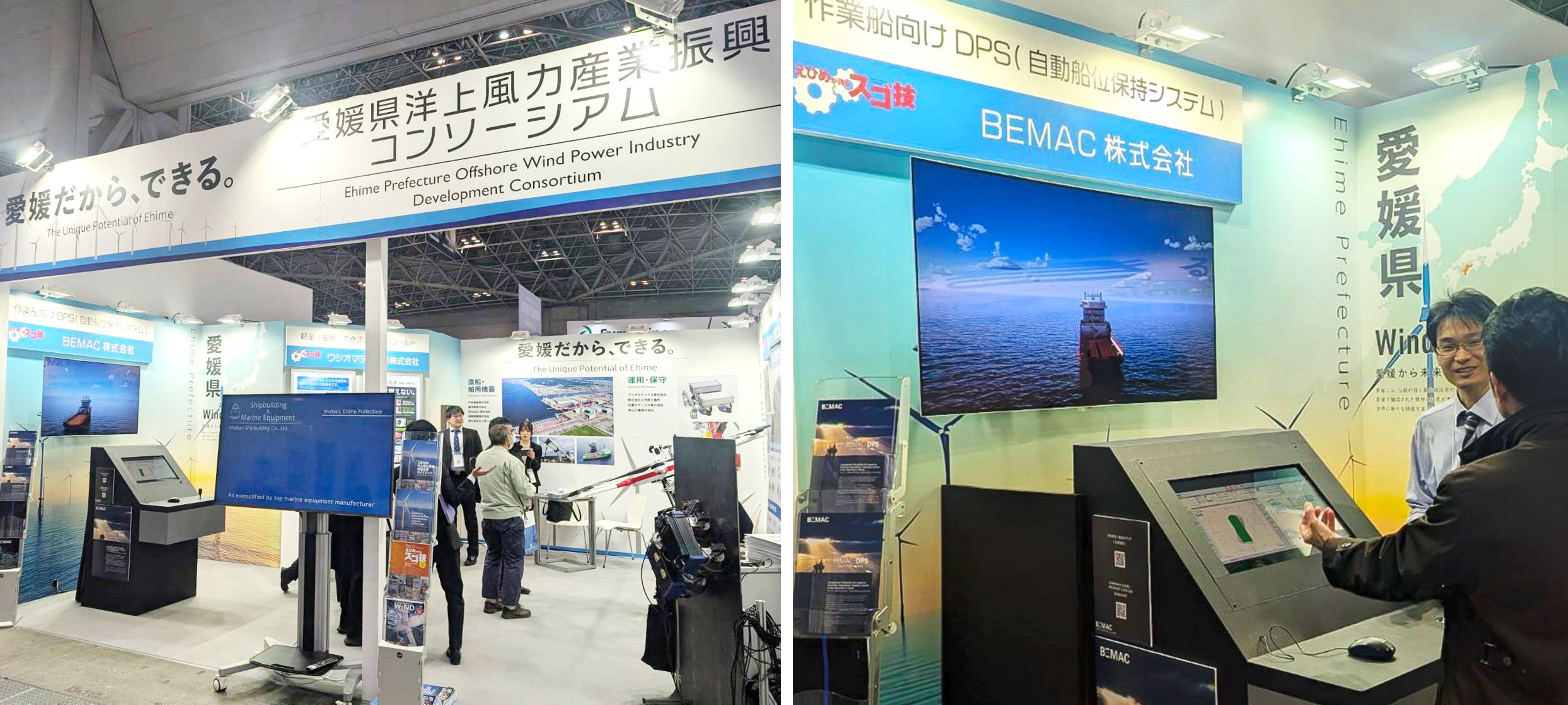 当社は愛媛県ブース(W23-74)に出展しており、当社が開発した自動船位保持システム「BEMAC-DPS」のシミュレータの操作を体験できます。